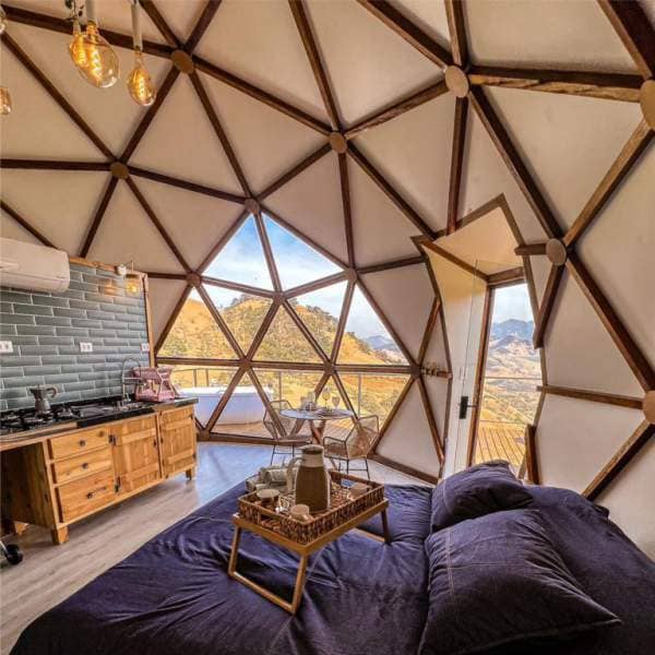 4. Versatilidade: Os Domos Geodésicos são altamente versáteis e podem ser desse modo usados para acomodações individuais, cabanas familiares ou até mesmo áreas comuns, como lounges e restaurantes.